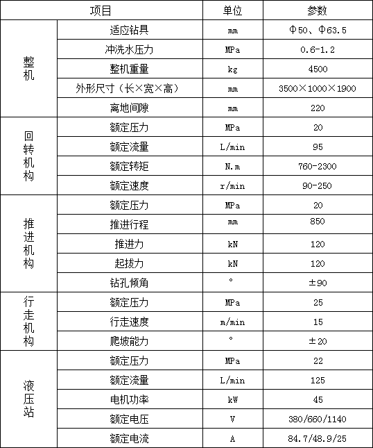 1. 履帶行走,大大提高移鉆、穩(wěn)鉆的效率,顯著減輕工人的體力勞動強(qiáng)度;